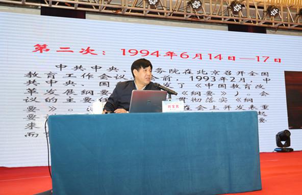 开幕式结束后,教育部职业技术教育中心研究所副所长刘宝民作了题为“加快推进教育现代化,建设教育强国——浅谈全国教育大会精神”专题报告。他从改革开放以来历次全国教育工作会议回顾、2018年全国教育大会精神、关于全国教育大会精神的学习贯彻落实、关于近期职业教育工作四个方面解读了全国教育大会。刘所长两个小时的报告,娓娓道来,有广度、高度、深度、厚度,给江苏职教德育人带来了温度。