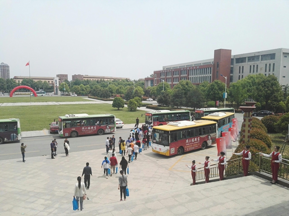 近日,沭阳县初三毕业生中考体育加试正在有序进行,为了更多地了解职业学校的发展概况,为毕业后的去向做更好的选择,全县一万五千余名初三毕业生应邀到宿迁经贸高职进行参观。