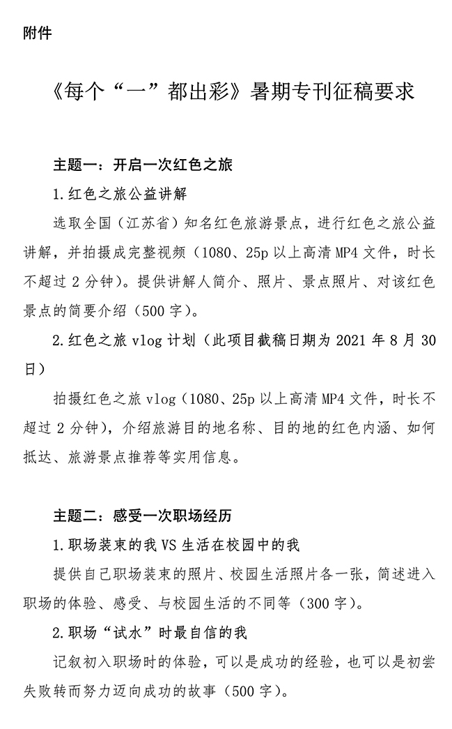 关于开展“每个‘一’都出彩”征稿活动的通知