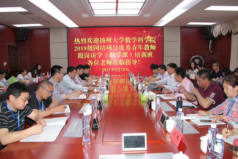 5月10日、11日,由扬州大学数学科学学院承办的2019级国培项目优秀青年教师跟岗访学(数学课)培训班一行44人来到淮安工业中专,进行跟岗学习交流活动。