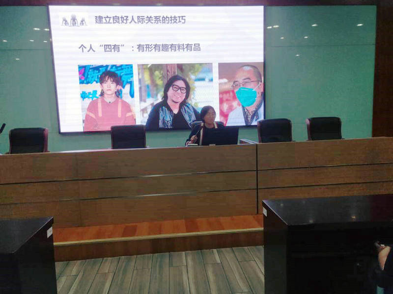 首先,蔡老师介绍了心理学著名实验:感觉剥夺实验,引出了本次培训的主题人际交往,强调了人际交往的重要性和必要性;其次,通过现场提问:什么是人际关系?启发女生委员们思考,并通过案例讲解和名词解释的方式,讲解了人际关系的含义;随后,教会女生委员们人际交往的四个原则:1.平等待人2.宽松礼让3.诚实守信4.互利互惠,现场演练了良好人际关系的技巧;最后,蔡老师布置了人际交往小任务,鼓励女生委员们将所学应用于实践。