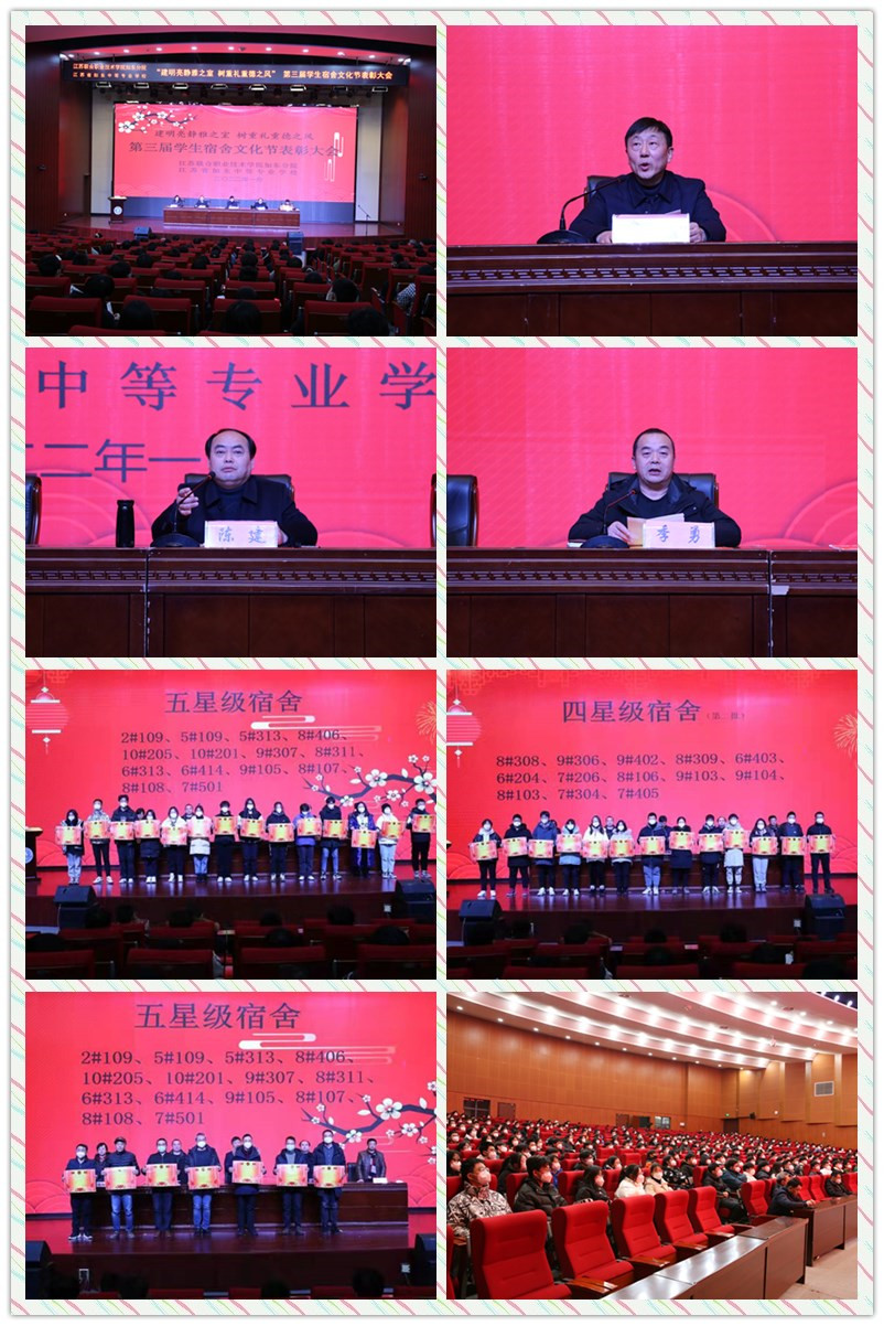 为创造美好生活空间,营造良好的宿舍文化氛围,构建和谐文明宿舍,2021年10月下旬,一场以“建明亮静雅之室 树重礼重德之风”为主题的宿舍文化节正式开帷幕,2022年1月13日,江苏联合职业技术学院如东分院、江苏省如东中等专业学校举行2021年学生宿舍文化节表彰大会,全校各学生宿舍室长、学生会全体成员及部分老师共400余人参加,大会由副校长陈建主持。