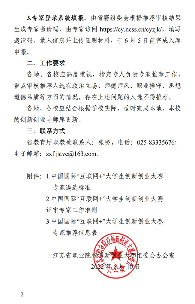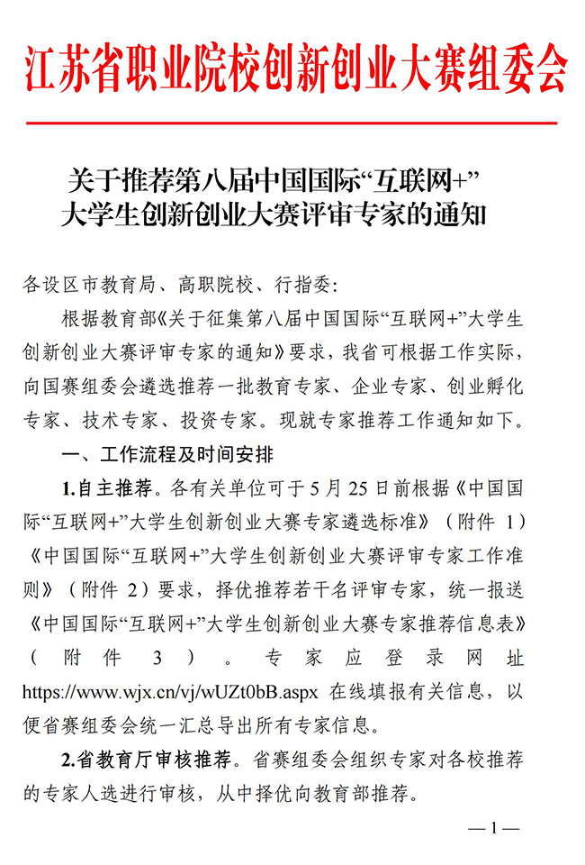 1.中国国际“互联网+”大学生创新创业大赛专家遴选标准